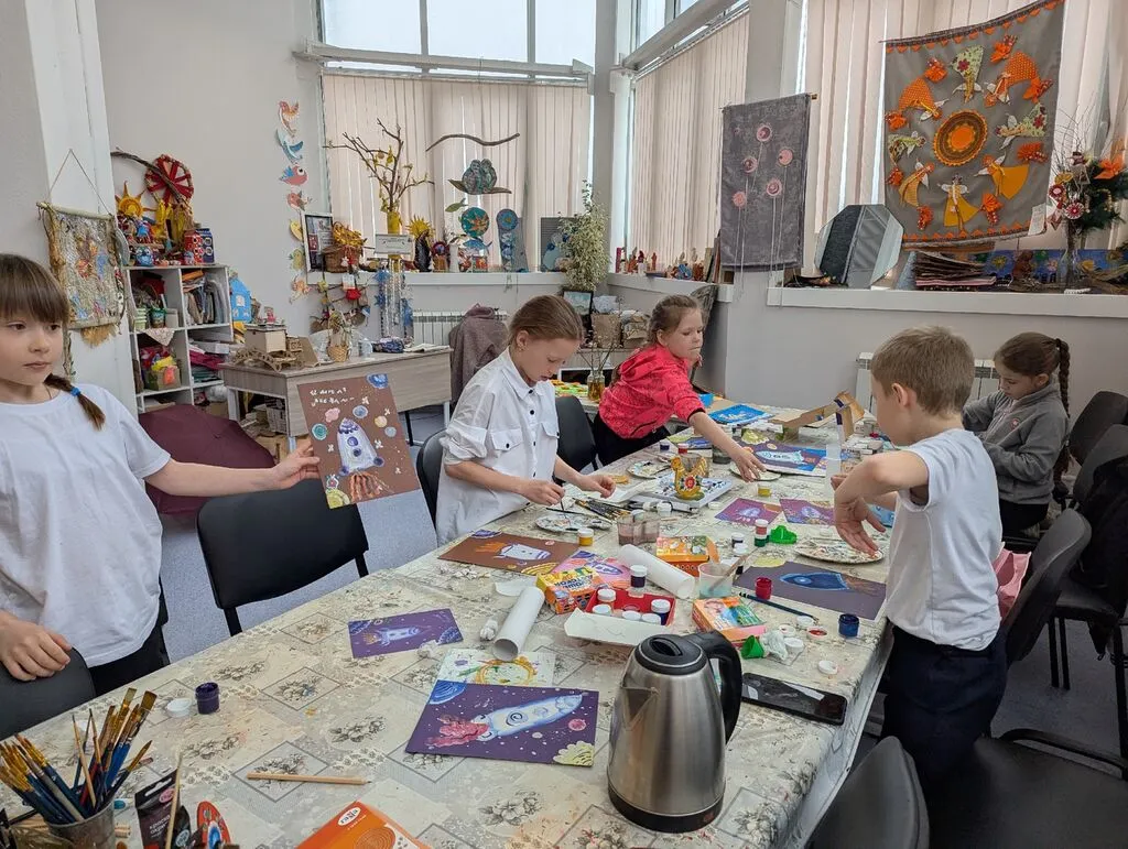 «Мы первые в космосе!» — вот такое творческое занятие в нашей мастерской прошло в канун Дня космонавтики. Ребята наперебой отвечали на вопросы о первом полёте человека в космическое пространство, о планетах солнечной системы, вспоминали строчки из песен, связанных с космосом, и, конечно же, хором кричали знаменитую фразу Юрия Алексеевича Гагарина: «Поехали!». А ещё они нарисовали открытки в стиле уральской росписи к знаменательному дню!